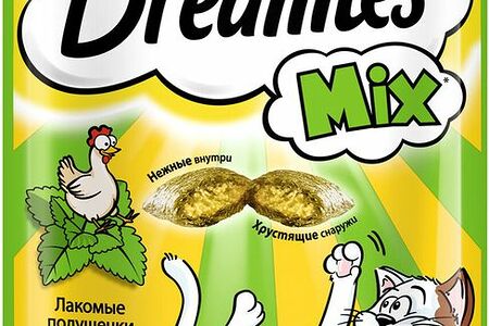 Лакомство Dreamies Mix для взрослых кошек с мятой и курицей, 60г доставка