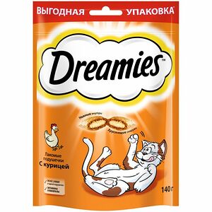 Срок годности в днях: 730Состав: Злаки и продукты их переработки, белковые растительные экстракты, мука животного происхождения (в том числе мука из курицы минимум 4%), животные жиры и растительное масло, гидролизат животного происхождения, витамины и минералы, зелень (в том числе сухая кошачья мята).Пищевая ценность: Белки: 33Жиры: 21Углеводы: 0Страна изготовления: РоссияПроизводитель: Dreamies