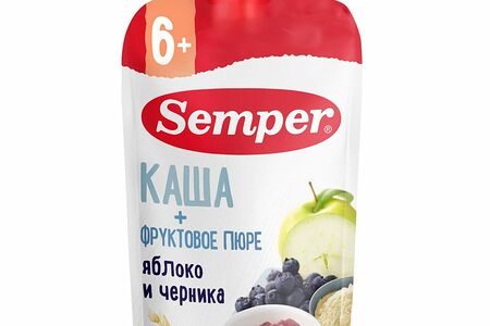 Пюре Semper яблочно-черничное с кашей с 6 месяцев, 120г доставка