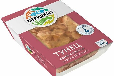 Тунец Меридиан желтоперый филе кусочки отварной в желе, 200г доставка