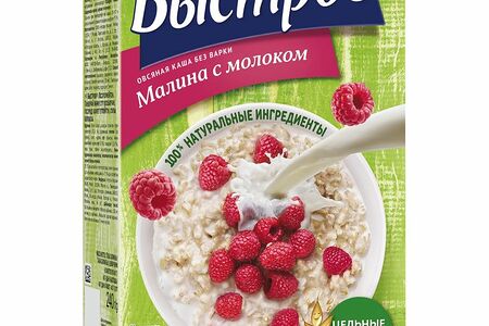 Каша овсяная Быстров Пребио Без варки с малиной и молоком, 240г доставка