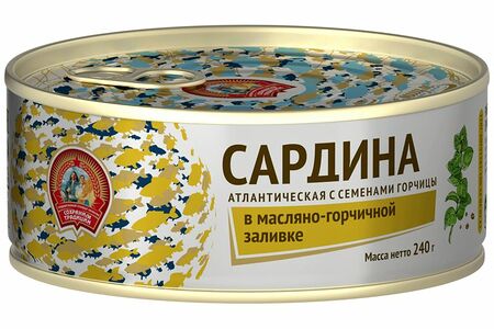 Срок годности в днях: 1095Состав: Рыба, масло подсолнечное рафинированное дезодорированное, соль, семена горчицы, горчичный порошок, сахар, регулятор кислотности - уксусная кислота ледяная (Е260).Пищевая ценность: Калорийность: 295Белки: 14Жиры: 26Углеводы: 1.3Страна изготовления: РоссияПроизводитель: Сохраним Традиции