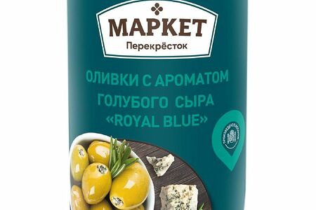 Оливки зелёные с ароматом голубого сыра Royal Blue Маркет Перекрёсток, 300г доставка