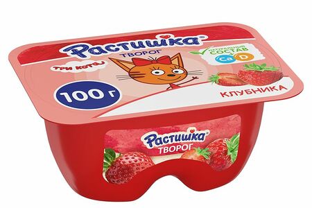 Творог Растишка клубника обогащённый кальцием 3.5%, 100г доставка