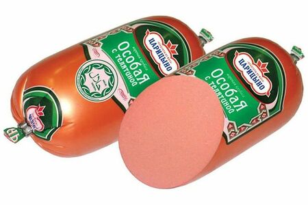 Срок годности в днях: 60Состав: Мясо птицы механической обвалки, вода питьевая, белковый стабилизатор, соевый белок, телятина, крахмал картофельный, соль нитритная (соль, фиксатор окраски-нитрит натрия), комплексные пищевые добавки (усилит.вкуса и аромата-глутамат натрия, специи и ароматизаторы:аромат мяса, лук, горчичное семя, пажитник, сельдерей, кориандр, глюкоза, краситель-куркумин, регулятор кислотности Е451i, стабилизаторы Е 450i.Е 450 iii.Е339i, специи и экстракты специй:перец черный, тмин, ароматизаторы, декстроза, антиокислитель:изоаскорбат натрия, лимонная кислота), сахар, чеснок, краситель красный рисовый, Возможно наличие пшеничной муки.Пищевая ценность: Белки: 10Жиры: 15Углеводы: 5Страна изготовления: РоссияПроизводитель: Царицыно