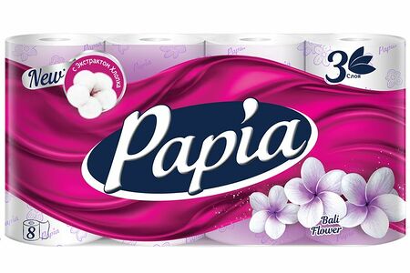 Бумага туалетная Papia 8шт Балийский цветок 3 слоя доставка