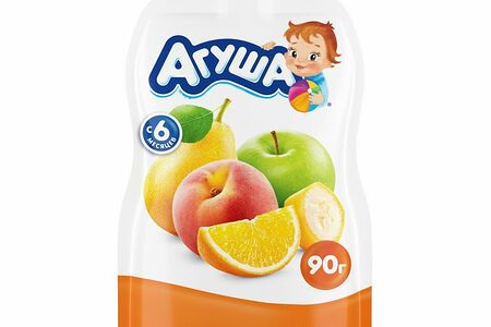 Срок годности в днях: 365Состав: Яблочное пюре, грушевое пюре, персиковое пюре, концентрированный яблочный сок, банановое пюре, концентрированный апельсиновый сок, концентрированный лимонный сок.Пищевая ценность: Калорийность: 70Белки: 0Жиры: 0Углеводы: 18Страна изготовления: РоссияПроизводитель: Агуша