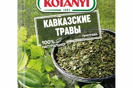 Срок годности в днях: 1080Состав: Кинза, петрушка, сельдерей, базилик, чабер садовый.Пищевая ценность: Калорийность: 259Белки: 17Жиры: 7Углеводы: 26Страна изготовления: АвстрияПроизводитель: Kotanyi