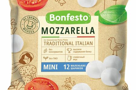 Сыр мягкий Bonfesto Моцарелла мини 12 шариков 45%, 100г доставка