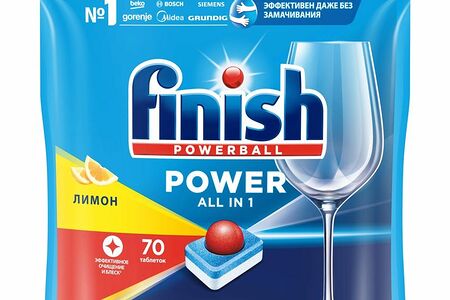 Средство Finish Powerball Power Aio для мытья посуды для посудомоечных машин с ароматом лимона таблетка, 70шт доставка