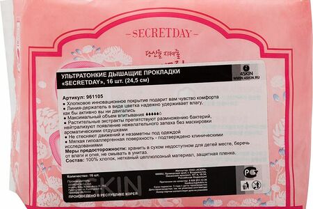 Прокладки Secret Day Sense love recipe ультратонкие дышащие органические 24.5см, 16шт доставка