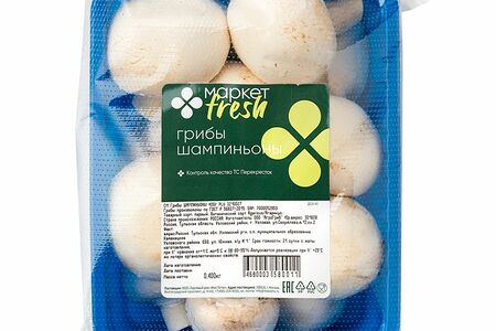 Срок годности в днях: 5Состав: Шампиньоны.Пищевая ценность: Калорийность: 27Белки: 4.3Жиры: 1Углеводы: 1Страна изготовления: РоссияПроизводитель: Маркет