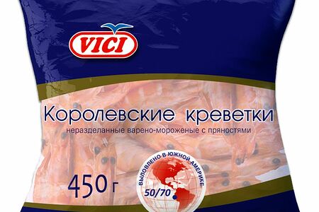Креветки Vici Королевские варено-мороженные 450 г доставка