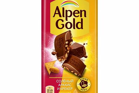 Шоколад молочный Alpen Gold с солёным арахисом и крекером, 85г доставка