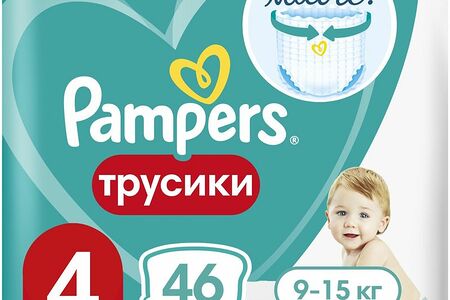 Подгузники-трусики Pampers Pants для мальчиков и девочек р.4 9-15кг, 46шт доставка