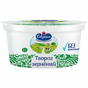 Срок годности в днях: 30Состав: Творожное зерно (обезжиренное молоко, закваска молочнокислых культур, уплотнитель – хлорид кальция, ферментный препарат), сливки, соль, консервант – сорбат калия.Пищевая ценность: Калорийность: 91Белки: 9Жиры: 5Углеводы: 2.6Страна изготовления: РоссияПроизводитель: Простоквашино