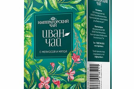 Срок годности в днях: 730Состав: Кипрей узколистный ферментированный, мелисса, мята.Пищевая ценность: Калорийность: 0Белки: 0Жиры: 0Углеводы: 0Страна изготовления: РоссияПроизводитель: Императорский чай