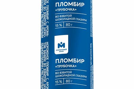 Мороженое пломбир Трубочка с ароматом ванили во взбитой шоколадной глазури 15% Молочный Знак, 80г доставка