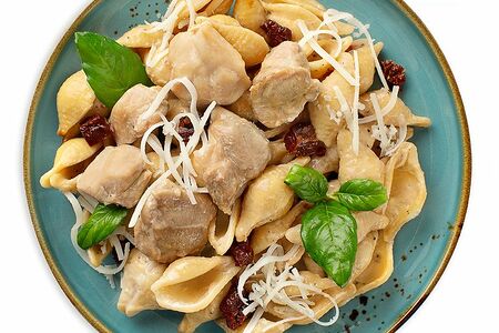 Срок годности в днях: 5Состав: Соус «Пепе Верде» (содержит молоко, сою, глютен, рыбу), изделия макаронные (содержат глютен), бедро куриное, сыр (содержит молоко), томаты сушеные, масло подсолнечное, соль.Пищевая ценность: Калорийность: 189Белки: 9.6Жиры: 7.8Углеводы: 20.2Страна изготовления: РоссияПроизводитель: Шеф Перекресток