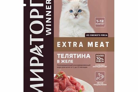 Корм Мираторг Winner extra meat с телятиной в желе для котят, 80г доставка