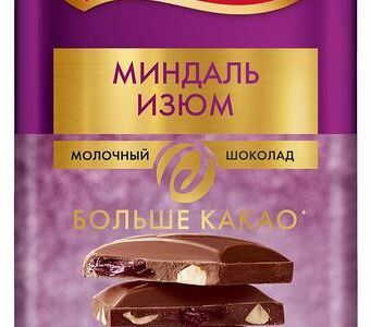 Шоколад молочный Россия-Щедрая Душа с миндалём и изюмом, 82г доставка