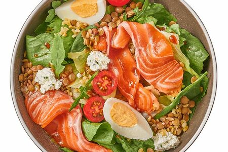 Срок годности в днях: 5Состав: Салат - сыр творожный с зеленью (содержит молоко), филе форели слабосоленое, яйцо куриное, булгур отварной , помидоры черри, чечевица отварная, салат романо, руккола, шпинат; заправка - масло подсолнечное, малина протертая с сахаром, уксус бальзамический (содержит сульфиты), соус Табаско , соль.Пищевая ценность: Калорийность: 225.9Белки: 4.8Жиры: 15.2Углеводы: 17.1Страна изготовления: РоссияПроизводитель: Шеф Перекресток