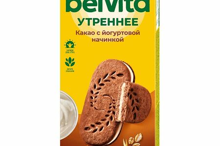 Печенье Belvita Утреннее злаки-какао-йогуртовая начинка, 253г доставка