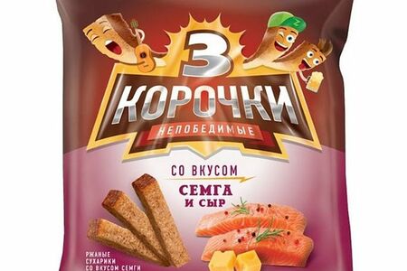 Сухарики Три корочки ржаные со вкусом сёмга с сыром, 100г доставка