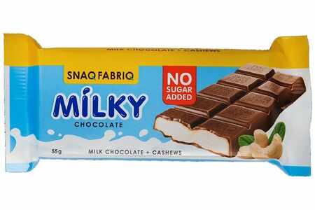Срок годности в днях: 360Состав: молочный шоколад (водорастворимые волокна кукурузы, какао масло, какао тертое, молоко сухое обезжиренное, эмульгатор (соевый лецитин), ароматизаторы натуральные, подсластитель (сукралоза)), молочно-ореховая паста (водорастворимые волокна кукурузы, олигофруктоза (пищевые волокна), кешью, масло кокосовое, молоко сухое обезжиреное, масло какао, эмульгатор (соевый лецитин), ароматизаторы натуральные, антиокислитель (аскорбиновая кислота), подсластитель (сукралоза)).Пищевая ценность: Калорийность: 477Белки: 10Жиры: 35Углеводы: 13Страна изготовления: РоссияПроизводитель: Snaq Fabriq