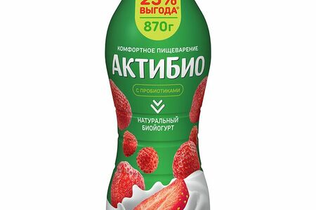 Биойогурт Актибио с клубникой и земляникой обогащенный бифидобактериями 1.5%, 870мл доставка