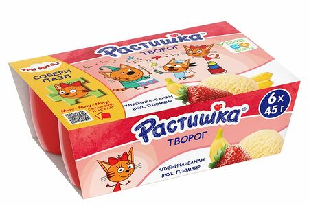Творог Растишка клубника-банан и пломбир 3.5%, 6х45г доставка