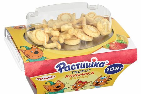 Творог Растишка клубника-банан с печеньем детский 3.5%, 108г доставка