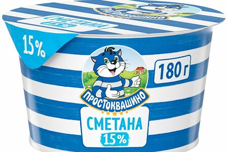 Сметана Простоквашино 15%, 180г доставка