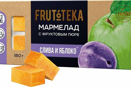 Срок годности в днях: 180Состав: Мармелад желейно-фруктовый резаный «Яблочный» : сахар, пюре яблочное (яблоки, консервант диоксид серы), вода питьевая, патока, агент желирующий пектин, регулятор кислотности кислота лимонная, агент влагоудерживающий лактат натрия. Мармелад желейно-фруктовый резаный «Сливовый»: сахар, пюре сливовое (слива, консервант диоксид серы), вода питьевая, патока, агент желирующий пектин, регулятор кислотности кислота лимонная, агент влагоудерживающий лактат натрия.Пищевая ценность: Калорийность: 300Белки: 0Жиры: 0Углеводы: 75Страна изготовления: РоссияПроизводитель: Frutoteka