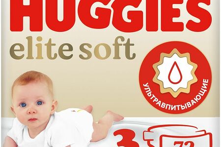 Подгузники Huggies Elite Soft детские одноразовые р. 3 5-9кг, 72шт доставка