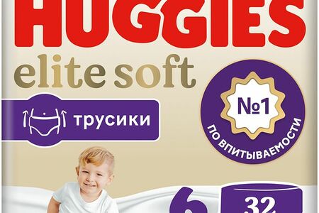 Подгузники-трусики Huggies Elite Soft р.6 15-25кг, 32шт доставка