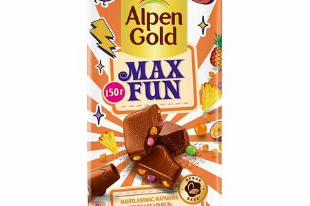 Шоколад молочный Alpen Gold Max Fun с фруктовыми кусочками, 150г доставка
