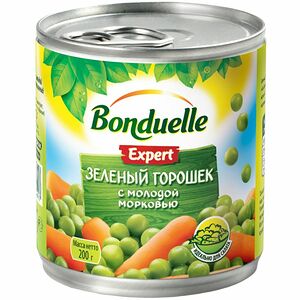 Срок годности в днях: 1460Состав: Зеленый горошек, вода питьевая, сахар - песок, соль поваренная пищевая.Пищевая ценность: Калорийность: 52.2Белки: 4.8Жиры: 0.2Углеводы: 7.5Страна изготовления: РоссияПроизводитель: Globus