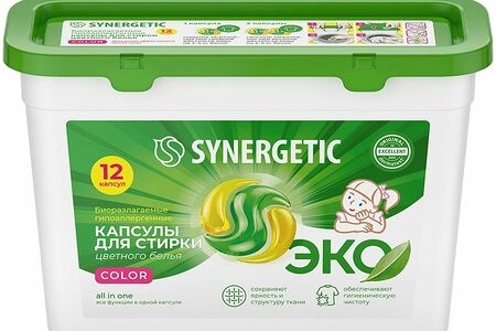 Капсулы для стирки Synergetic Color биоразлагаемые концентрированные гипоаллергенные, 12х15г доставка