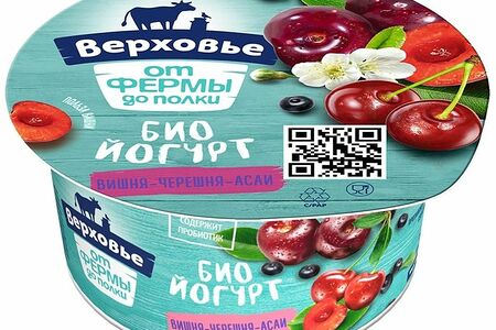 Биойогурт вишня-черешня-асая обогащённый детский 2.9% Верховье, 150г доставка