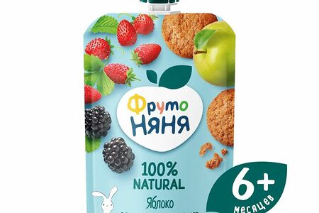 Пюре ФрутоНяня с овсяным печеньем яблоко-земляника-ежевика с 6 месяцев, 90г доставка