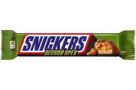 Срок годности в днях: 216Состав: Молочный шоколад (сахар, какао масло, какао тертое, лактоза, сухое цельное молоко, сухая молочная сыворотка, молочный жир, эмульгатор (соевый лецитин), ароматизатор (ванилин)); глюкозный сироп (кукурузный, пшеничный), арахис, сахар, масло пальмовое рафинированное дезодорированное, фундук, сухое обезжиренное молоко, сухой яичный белок, соль, ароматизаторы (ванилин, лесной орех). Cодержит глютен. Может содержать незначительное количество миндаля.Пищевая ценность: Калорийность: 507Белки: 7.6Жиры: 27.5Углеводы: 56.4Страна изготовления: РоссияПроизводитель: Snickers