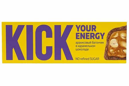 Батончик арахисовый Kick Your Energy в карамельном шоколаде, 45г доставка