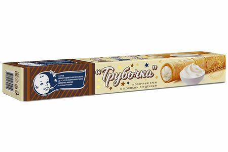 Срок годности в днях: 30Состав: Молочный крем с молоком сгущенным с сахаром в вафельной трубочке. Молочный составной продукт. Состав: молоко сгущённое с сахаром (молоко цельное, молоко обезжиренное, сахар,(сахароза)),масло сливочное, трубочка вафельная(мука пшеничная хлебопекарная в/с, сахар, сливочное масло, меланж яичный жидкий пастеризованный (яйцо куриное), вода питьевая).Пищевая ценность: Калорийность: 468.6Белки: 7.8Жиры: 26.2Углеводы: 50.4Страна изготовления: РоссияПроизводитель: Без бренда