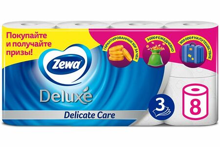 Бумага туалетная Zewa Deluxe 8шт белая 3 слоя доставка
