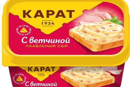 Сыр плавленый Карат+ Сливочный с ветчиной 45%, 400г доставка