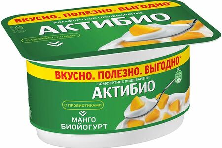 Биойогурт Актибио с манго обогащенный бифидобактериями 3%, 110г доставка