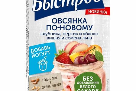 Хлопья овсяные Быстров Овсянка по-новому клубника-персик-яблоко-вишня-семена льна-отруби, 175г доставка