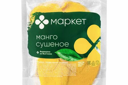 Срок годности в днях: 540Состав: Плоды манго.Пищевая ценность: Калорийность: 340Белки: 5Жиры: 0Углеводы: 80.6Страна изготовления: ВьетнамПроизводитель: Маркет