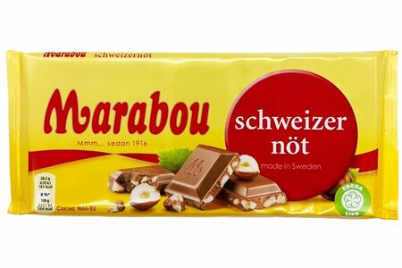 Срок годности в днях: 275Состав: Сахар, масло какао, лесной орех (15%), тертое какао, сухая сыворотка (молоко), сухое обезжиренное молоко, концентрированное масло, сывороточный продукт (молоко), эмульгатор (соевый лецитин), ароматизатор.Пищевая ценность: Калорийность: 570Белки: 6.6Жиры: 37Углеводы: 50.5Страна изготовления: ШвецияПроизводитель: Marabou